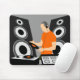 Funky custom mousepad with a cool vector illustration of a DJ spinning vinyl records at the decks with massive speakers in the background - www.vectoropenstock.com - A stylish & trendy orginal gift for teenagers, music lovers & clubbers.