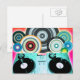 DJ Turntable with vinyl music albums records for disc jockey with coloured circles and balls pop art.