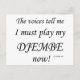 The Voices Tell Me I Must Play My Djembe Now! Do you have voices in your head telling you to practice your instrument, or that you need to perform? The voices may come from your teacher or director, or from yourself, telling you that you need to practice to bring out all the talent you have!