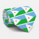 The national flag of Djibouti features two equal horizontal bands of blue (top) and green with a white isosceles triangle based on the hoist side bearing a red, five-pointed star (representing the areas Somalis live in the region) in the centre. These five areas are British Somaliland and Italian Somaliland (Somalia), French Somaliland (Djibouti), the Ogaden, and the Northern Frontier District. The colours used can be seen to symbolise the earth (green), the sea and sky (blue) and peace (white), with the red star representing unity. It was hoisted on the day of the independence of Djibouti on 27 June 1977. There is a red five-pointed star on Djibouti's white triangle.