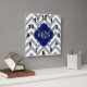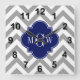 Dk Grey Lg Chevron Navy Quatrefoil 3 Monogram Square Wall Clock