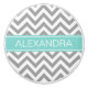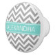 Dk Grey White LG Chevron Turquoise Name Monogram Ceramic Knob