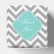 Dk Grey White LG Chevron Turquoise Name Monogram Favour Box