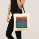 Handy tote bag with DL Robbins Sunset Over Lake in yellow, red, blue and green