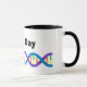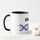 The image is a big DNA chain. This mug thanks those that not only discovered DNA, but the lab workers all over the world who give us the results of DNA tests.  Their work has changed lives.  This makes a great gift for a lab worker who does DNA test results.  Or you can have this as Sibling Day. :)  Since the DNA chain is so colourful, this design works on any of the other colours offered also. And, you can buy this design on any of the drinking items offered (i.e. travel mug?)   Designed by Sheila Cicchi, Brownielocks.com. All Rights Reserved.