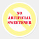 No Artificial Sweetener round stickers, white with yellow and red.