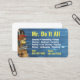 This card is a handyman business card for builders, contractors, landscapers and plumbing