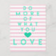 NewParkLane - Postcard, with inspirational quote 'Do more of what you love' in a modern typography in teal, against an abstract pattern of pink and white stripes.