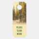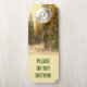 Please do not disturb / Please Clean Room door hanger with a beautiful nature photograph. An isolated winter path with tall snow covered pine trees. A golden twilight hue creates a magical feel to this photo.
