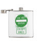 The flask itself is fine. It’s a cheap flask, obviously bought in bulk, however am prepared to overlook that. Given that it is a personalized item, I would have liked to have seen gift boxing instead of the generic packaging. Terrible printing, and/or quality. It’s a cheap, tacky vinyl. It is not cut straight and is also applied in a way that it is overhanging the bottom, causing the glue to catch on items and it will eventually roll and tear, damaging the wrap.