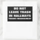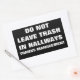 DO NOT LEAVE TRASH IN HALLWAYS RECTANGULAR STICKER