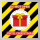 An illustration of a simple red gift box with the text "Do not open until Christmas", and black and yellow striped background. Gifts are the best way of giving surprise to your family and friends. This design is good to be printed on a sticker or gift wrapper for the presents put under the Christmas tree.