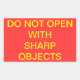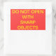 This shipping label is brightly coloured for easy visibility. "Do Not open With Sharp Objects" is in bold letters. This design can be purchased as-is or you can use it as a template to make your own unique design. Just upload your own photographs or graphics to this template and add text to finish your design if desired and purchase.