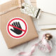 Please Do not touch hand forbidden warning sign symbol Classic Round Sticker. Custom danger icon stickers and envelope seals. Customisable colours. Red signage for diner, museum, tourist area, hotels, motel, bed and breakfast, hospitality business, conference building, home, office space, restaurant, company, school, dorm, university, studio, school, hospital, care home, bedroom, bathroom, meeting room, editing room, shop, store etc. Round circle with diagonal stripe. Modern hand silhouette logo.