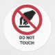 Our do not touch prohibition signs are designed to enhance safety and notify of dangers in various settings. Our ISO 7010 prohibition signs always include a red circle and a red diagonal on a white background with a black standardised pictogram. They are the "must not do" signs. Well-known signs include the "no-smoking" sign, "no photography," "not drinking water," and the "no open flame" sign. These prohibition signs are an essential tool for identifying and cautioning individuals, reducing risks, and promoting preventative measures. With its ISO 7010 compliance, this do not touch prohibition sign meets international standards for hazard communication. It features a bold and eye-catching design, making it easily noticeable in any environment where hazards are present. The prohibition label serves as a visual reminder of the danger. Its clear and concise message helps raise awareness among employees, customers, or visitors, ensuring they exercise caution and take necessary precautions. By prominently displaying this warning on containers, equipment, or areas containing these materials, you can effectively communicate the potential risks and encourage responsible handling and storage practices. This proactive approach significantly minimises the likelihood of accidents, protecting lives, property, and the environment. Trust our waterproof adhesive labels and signs to enhance safety protocols and maintain compliance with industry regulations. You can customise the text on our labels to indicate the precise nature of the hazard or to translate it into other languages.