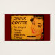 Smiling woman with retro red lipstick and nails drinks her cup of morning coffee. The caption reads "Drink Coffee - Do Stupid Things Faster with More Energy."