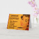 Smiling woman with retro red lipstick and nails drinks her cup of morning coffee. The caption reads "Drink Coffee - Do Stupid Things Faster with More Energy."