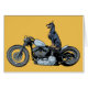 A Doberman Pinscher sitting on a bobber motorcycle. T-shirts, sweats, novelty gift swag.