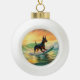 Doberman Beach Surfing Painting Ceramic Ball Christmas Ornament