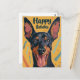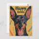 Doberman Birthday greeting. A smiling Doberman wishes Happy Birthday. Perfect for All Doberman lover and Doberman owner.