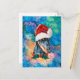 Doberman Breed Dog Christmas features a watercolor of a Doberman with a red Santa's Hat, a red Christmas scarf, and a galaxy watercolor.