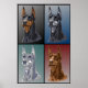 The colours of the Doberman is done in the pop art style and shows the 4 distinct colours of the Doberman pincher. Black, blue, silver and red. Computer art by Kathie Miller.