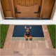 The deep midnight blue background adds a bold and sophisticated touch, making it perfect for modern entryways. Designed with extra space at the top and bottom, it allows easy personalization with names, welcome messages, or custom text—ideal for unique dog-themed doormats and thoughtful gifts.