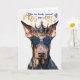 A gorgeous Doberman Pinscher looking kingly in a handsome crown and cool blue sunglasses on this funny birthday card with a king for a day message.