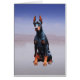 A cute Doberman Dog sitting with colourful background, a perfect gift idea for someone who love this dog breed.