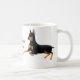 Original fine art design of an alert Doberman Pinscher dog by illustrator Carolyn McFann of Two Purring Cats Studio on a quality mug for Dobie fans.