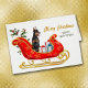On this Holiday card, a Doberman Pinscher Dog sits in a pretty red and gold decorative sleigh. Beside the dog sits gift packages tied with colourful bows, and behind the sleigh is holly with red berries. The gold script text at the right says "MERRY CHRISTMAS" and your custom text is in green. All the text, inside and out, may be easily changed to anything you'd like. You can see more dog breed images and products at Dog Village.