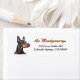 The left side of these return address labels feature a beautiful watercolor painting of a majestic Doberman Pinscher Dog. Your custom text is in cinnamon brown and dark grey at the right. Everything is placed on a white background.