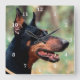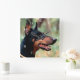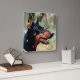 Slight cartoon effect on this image of a Doberman Pinscher dog with cropped ears against a woodsy green background colour scheme. Perfect for the Dobie dog lover in you!