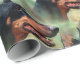 Slight cartoon effect on this image of a Doberman Pinscher dog with cropped ears against a woodsy green background colour scheme. Perfect for the Dobie dog lover in you!