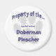 Every good dog owner knows they are the property of their dog. Doberman Pinscher owners will wear: Property of my (spoiled rotten) Doberman Pinscher with pride on a t-shirt, button, mug, magnet, keychain and more.
