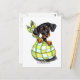 Cute black and tan Dobe or Dachshund puppy wrapped in a plaid sack. Great for kids and babies. Original illustration by Andie of Off-Leash Art.