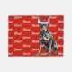 Your dog deserves a blanket of their own, especially with their name and breed on it. Fun throw to warm the season by the fireside or tossed over the sofa. A Doberman dog in a Santa hat on a red background for the Dobie lover's holiday home decor, with your dog's name patterned across the dog blanket. Background colour is yours to change.