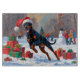 A sleek Doberman runs powerfully through the snowy winter scene, wearing a festive red Christmas hat. This striking design highlights the breed’s athletic build, loyal nature, and spirited personality while capturing the warmth and magic of the holiday season. A bold winter moment full of festive charm.