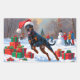 Doberman Running in Snow with Christmas Hat Rectangular Sticker
