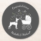 Include the big brother or sister fur baby in the celebration with this adorable Dobermann Pinscher dog baby shower design! Perfect for a puppy lover with a baby on the way. The Dobie is next to an adorable vintage carriage. The grey makes it perfect for a gender neutral baby shower!