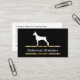 Doberman Pinscher dog breeder business cards with graphic Doberman silhouette and gold coloured design elements digitally printed on the front to ad a touch of class in a two side design that includes two side printing. Organise your business detail information the way you want on both sides.