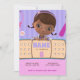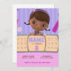 This design is a Doc McStuffins birthday bash extravaganza! Picture a purple striped backdrop with pink and white polka dots dancing around. Tailor it with your party details for that personal touch! Available as printable invites and instant downloads.