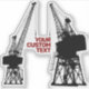 Silhouettes of two dockyard cargo cranes. Vector icons with customisable colour. Custom text.