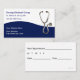 Doctor office business cards with graphic image of a stethoscope, appointment card on back, and great text layout you can customize online. Modern design stands out and gives your business card some character and style, with ability to change the white background color. Designed as a business card template for a doctor, group practice, health insurance, or clinic.