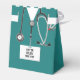Creative medical party doctor favor boxes featuring hospital scrubs, stethoscope and Swiss Army knife. Edit text to easily personalize.