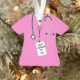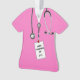 Creative medical school graduation novelty gift for doctor featuring pink hospital scrubs and ID tag. To personalise edit text to add name and year of graduation.
