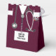Creative medical design featuring maroon hospital scrubs and a stethoscope. Edit text to easily personalise.