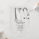 Creative medical school graduation party invites featuring lab coat, stethoscope and funny Swiss army knife. Edit text to create unique doctor party invitation or medical school grad announcement.