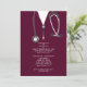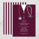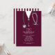 Creative medical school graduation party invites featuring maroon hospital scrubs and stethoscope. Edit text to create unique doctor grad party invitation or medical school graduate announcement.