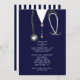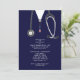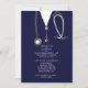 Creative medical school graduation party invites featuring hospital scrubs and stethoscope. Edit text to create unique doctor party invitation.